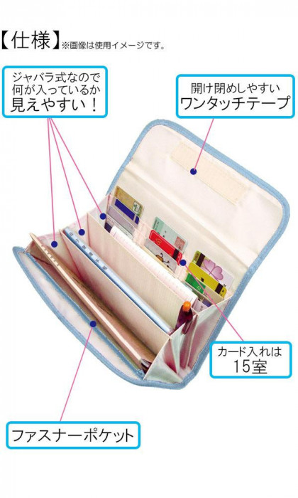 | 仕様 | カード収納枚数:15枚 ファスナーポケット:1つ ジャバラ式ポケット:1つ(3室) |