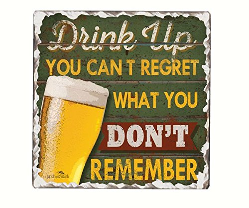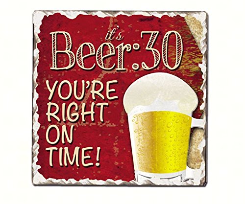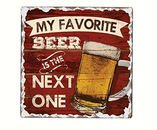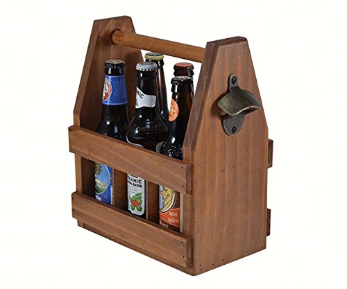 Wooden 6 Pack Beverage / Beer Caddy Bundle, Includes 4 Decorative Beer Themed Tile Coasters