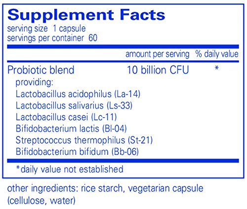 Probiotic G.I. provides 10 billion CFU per capsule of the beneficial bacteriaLactobacillus acidophilus, Lactobacillus salivarius, Lactobacillus casei,Bifidobacterium bifidum, Bifidobacterium lactis and Streptococcus thermophilus. Research indicates that these strains provide particular support for healthy immune balance within the G.I. tract. Beneficial microflora are crucial for proper gut associated lymphoid tissue (GALT) function and development. The GALT helps protect intestinal mucosa from allergens and toxins and is a major component of the body's immune system. It is estimated that more than 70% of the body's B lymphocytes are found in the GALT. Probiotics are believed to support healthy GALT composition, and in turn, support barrier function, G.I. epithelial cell health and T cell function within the G.I. tract. Some probiotic strains may also modulate local production of cytokines in the G.I. epithelium. L. casei and B. lactis support healthy T cell activity and cytokine production in the intestine, at least in part by regulating transcription of genes that encode for cytokines. L. acidophiluspromotes healthy cytokine production in the colon. Research also suggests that metabolites produced from Streptococcus thermophilus may cross the intestinal barrier to support healthy cytokine production and immune function.*Feature