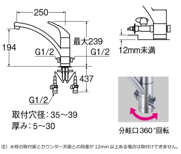 食器洗い機の接続に便利な分岐口付です。湯水どちらも送水可能!!凍結が予想される地域用の水栓です。