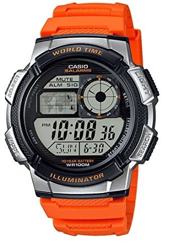 -. Title : Casio Men's '10-Year Battery' Quartz Resin Casual Watch, Color:Orange (Model: AE-1000W-4BVCF)