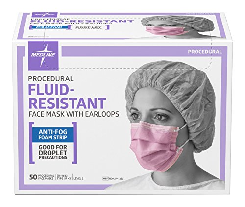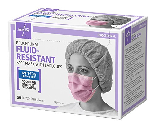 Medline NON27412EL Fluid-Resistant Procedure Face Masks with Earloop, Anti Fog, Latex Free, Purple (Pack of 300)