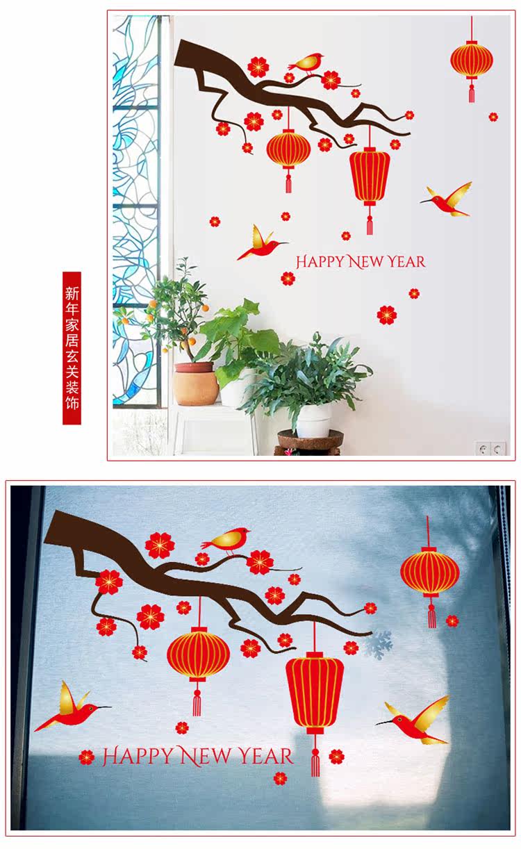 2017春节元旦新年过年墙贴画客厅玻璃门店铺橱窗装饰窗花帖可移除