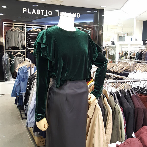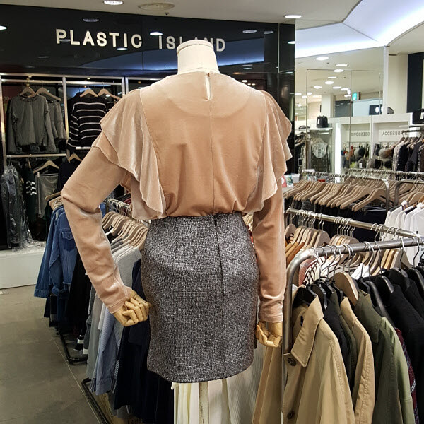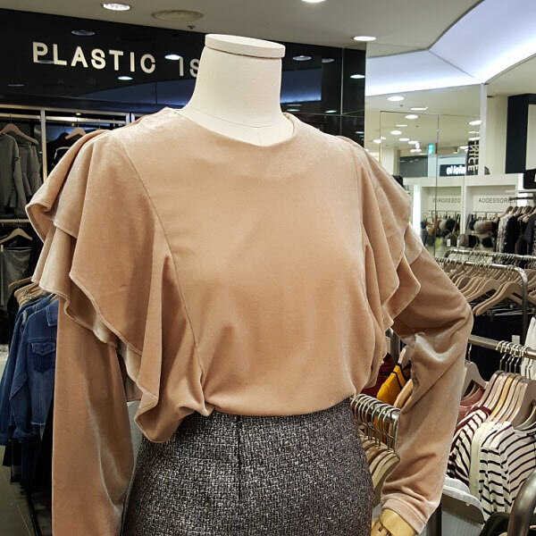벨벳 소재의 프릴이 있어 귀엽고 여성스러운 블라우스예요
