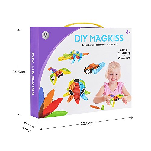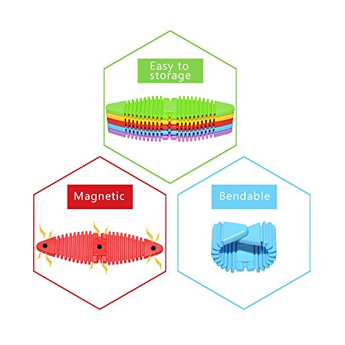 -. Feature : 【Wearable Magnetic Blocks】Build a shrimp,octopus,fish,crocodile and more with this 24 piece wearable theme set / 【Speical Material】High-quality, flexible material and strong magnetic connection allows you to create organic 3D shapes / 【How to use it ?】Zip or stack pieces in addition to bending and connecting them magnetically. / 【Package Contents】16 flexible magnetic strips and 8 black & white connector pieces add structure and complete your design with eyes, wheels, and more / 【Gift Idea】Package Size :11.90 *9.50 *2.14 inch ,One Handles makes it is easy to handle.Exquisite package will consider a best gift to kids(over 3 years old)