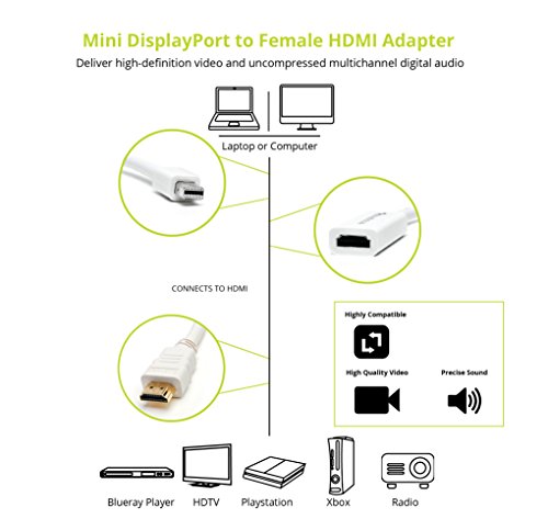 BlueRigger Bundle - Premium Mini DisplayPort (Mini DP) to HDMI Female Adapter + HDMI Cable - 10 Feet