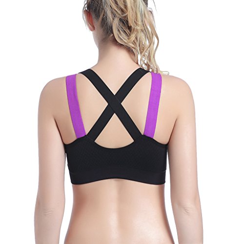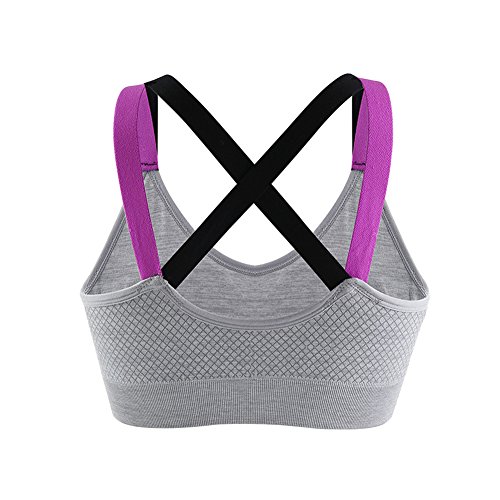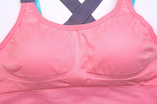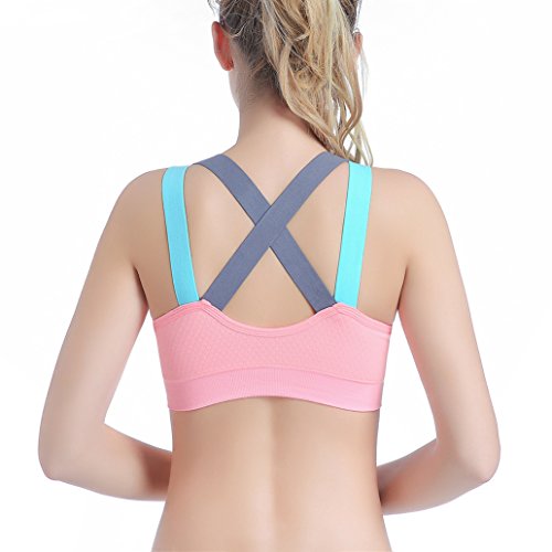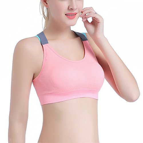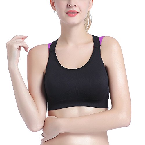 -. Feature : These professional sports bra reduce the friction,keep breathability and comfortable,you could wear them everyday. / The professional sports fabric,not easily deformed and great elasticity / We widens the colorblock strappy,avoid the strappy fall down / Removable cups and high impact / Occasion:gym,running,yoga and any other exercise