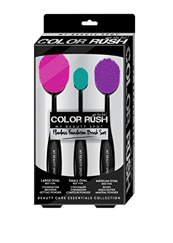 My Beauty Spot Color Rush Flawless Foundation Oval Toothbrush Style Makeup Brush Set With Multicolroed Bristles - Small, Medium & Large