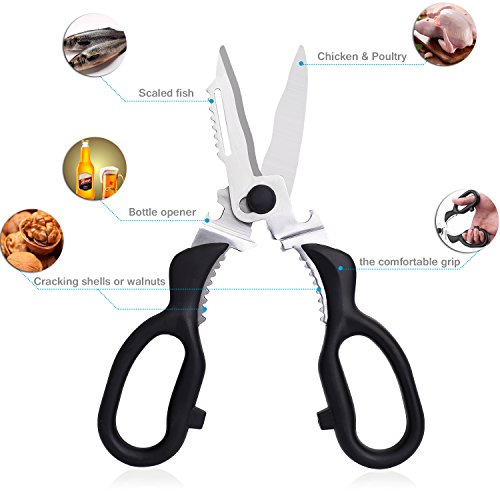 ASKY HEAVY DUTY KITCHEN SHEARS MULTI-PURPOSE UTILITY SCISSORS FOR CHICKEN, POULTRY, FISH, MEAT, VEGETABLES, HERBS, GARDENING AND BBQ'S