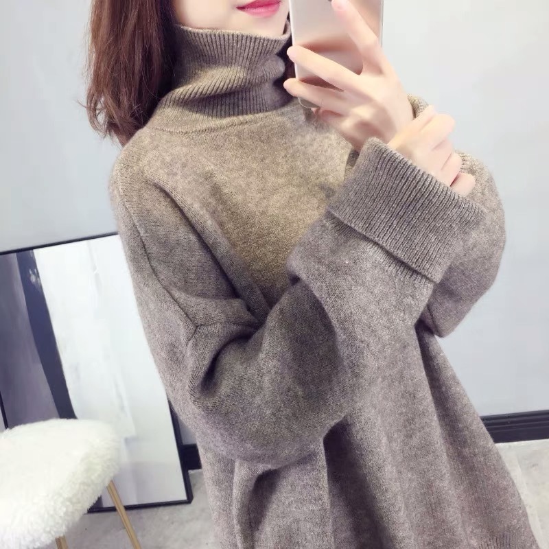 ざっくりタートルにゆったりシルエットがフェミニンで今年らしいニット。