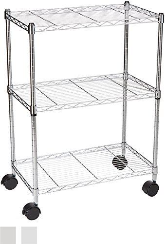 AmazonBasics 3-Shelf Shelving Unit on Wheels - Chrome