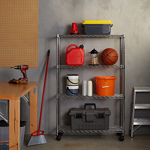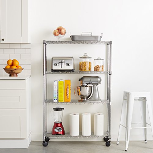 AmazonBasics 4-Shelf Shelving Unit on Wheels - Chrome