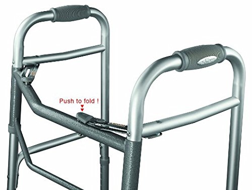 Studio : OMNI Health Solution, Ltd Publisher : OMNI Health Solution, Ltd Binding : Health and Beauty Product Description Comes with wheels and a vinyl contoured hand grip Each side operates independently to allow easy movement through narrow spaces and greater stability while standing Easy push-button mechanisms may be operated by fingers, palms or side of hand Newly designed rear glide cap allows for walker to slide easily and smoothly over most surfaces Sturdy 1 inch diameter aluminum construction ensures maximum strength while remaining lightweight 0