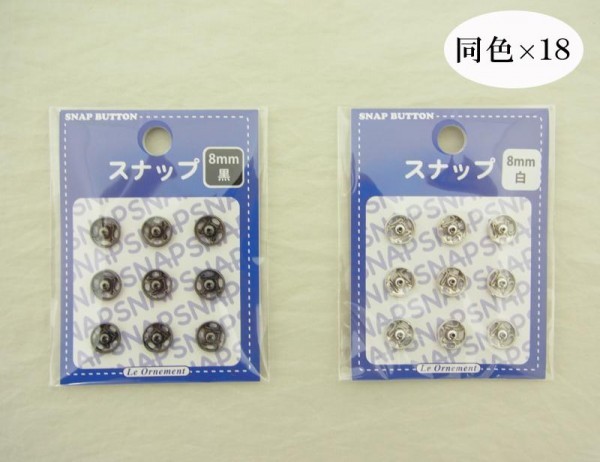 洋服や小物などに。縫い付けタイプのスナップボタンです。 製造国:日本 素材・材質:白:真ちゅう・スズメッキ黒:真ちゅう・クロームメッキ セット内容:スナップ 8mm 9個入(同色)×18 ※サプライヤー直送品  ご注文後3~4営業日後の出荷となります【商品名】オルヌマン スナップ 8mm 9個入×18 白