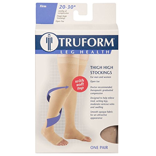 Truform Open Toe, Thigh High 20-30 mmHg Compression Stockings, Beige, Large