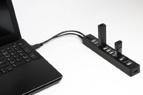 Add up to 13 peripherals quickly and easily with the Sabrent HB-U14P USB 2.0 Hub. Especially great for notebooks which come with only a few ports in an era when you need to attach many USB devices at once, such as a printer, card reader, cell phone, iPod, thumb drive, mouse, keyboard, or an external hard drive. Achieve full 480 Mbps on each port. Fully backwards compatible with the USB 1.1 products. Equipped with a power supply, The hub is uniquely designed so that the two switches can control first six or second seven usb ports with the blue Led indicators.