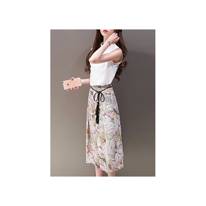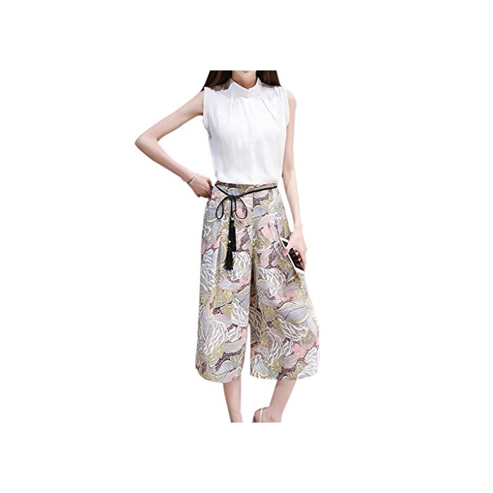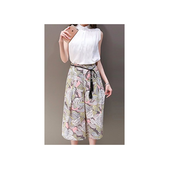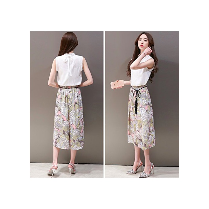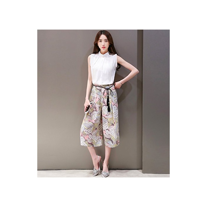 Ange select ange select 노슬리브 셔츠 무늬 가우쵸 팬츠 상하 세트 트렌드 상품 예쁜 코디네이트 (XL)
