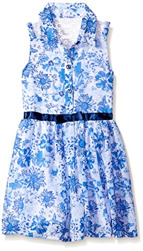 Adorable chiffon floral printed dress with belt around waist