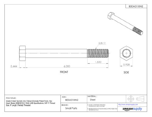 Steel Hex Bolt, Grade 8, Zinc Yellow-Chromate Plated Finish, Hex Head, External Hex Drive, Meets ASME B18.2.1/SAE J429, 6" Length, Partially Threaded, 5/8"-11 Threads