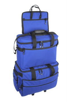 -. Feature : This combination includes the TB19 wheeled carrier, the Project / Sewing Machine Tote and the Notions Bag for fantastic value! The TB19 Wheeled Carrier holds most small to mid-size machines. / Constructed of 600d Poly with a red ball-bearing wheel set, multiple interior pockets for additional storage, and fashion forward color options make this product an absolute must-have for the quilting and sewing community! / The Project / Sewing Machine Tote is perfect for carrying small, lightweight machines or your current projects! / Dimensions - 13"h x 17"w x 7"d