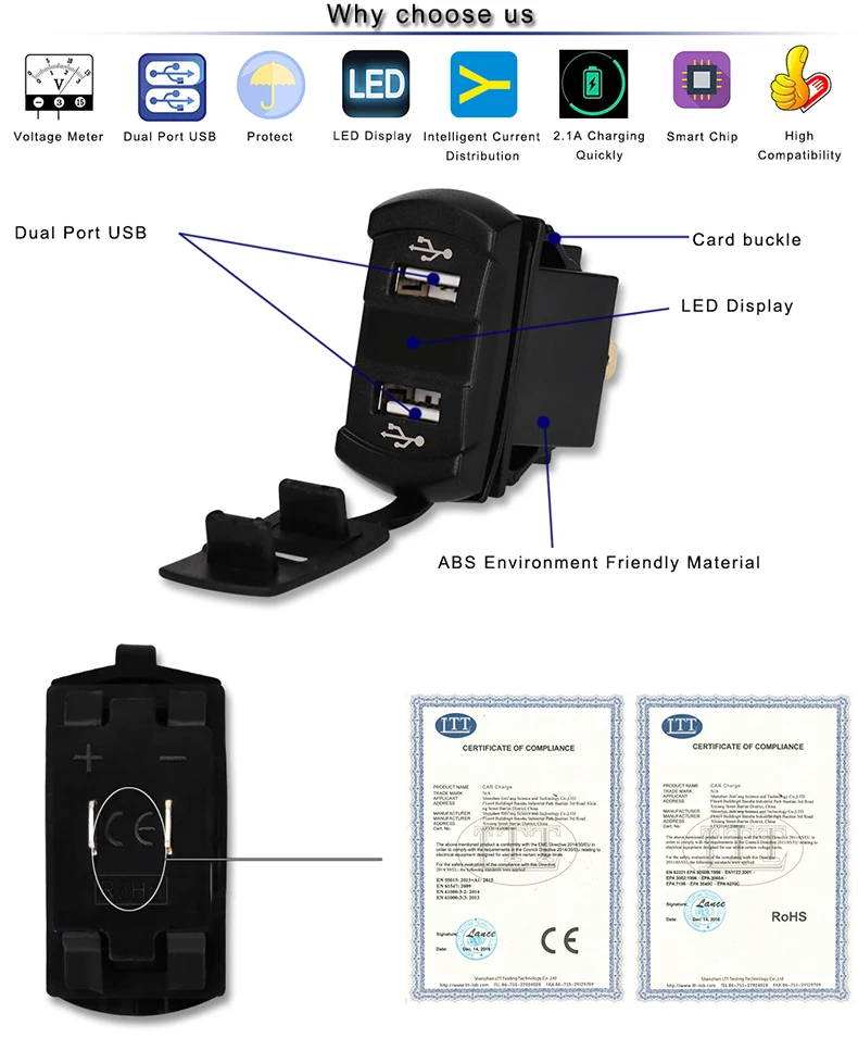 Feature 3:Car Dual USB Socket for iphone 7 plus For iphone 6 6s For Huawei