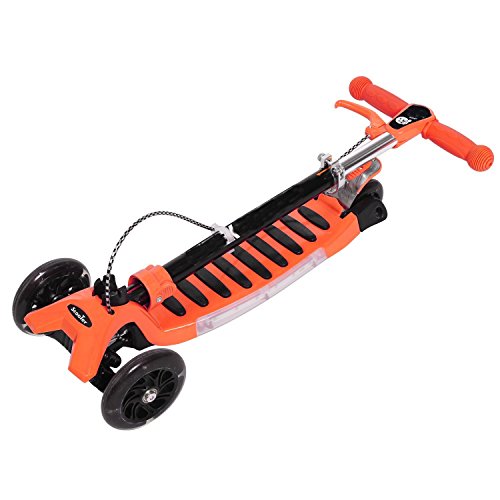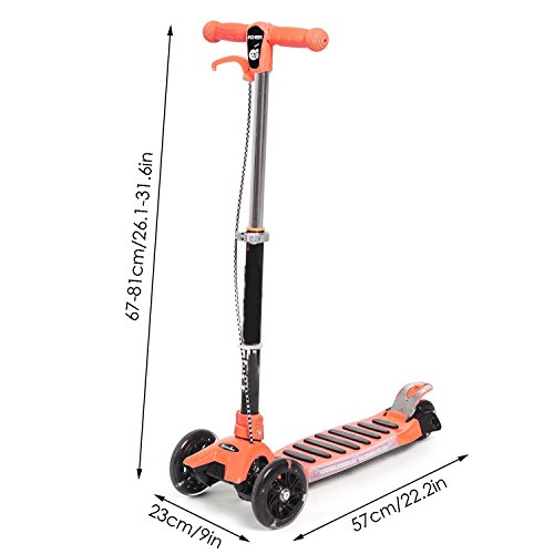 -. Feature : LED wheels bring the lights in the dark. Let your kick scooter be a Star! Our 3-wheel design gives the kick scooter both added stability and safety. And 3-wheel design make riding fun and easy for kids of any skill level / Durable aluminum frame with Stable 3-wheel design, Develops kids balance,co-ordination and motor skills. Support weight up to 110 lbs / Adjustable Height T-handle Bar is specifically strong and accommodate children of different height as they grow / Folding design make the three wheeled scooter easy to carry and convenient to store when not in use / 1 Year Warranty, US warehouse in stock, 100% refund without any hesitation if the mini led scooter couldn't meet your request, you can get it among 4-10 days, as the products are shipping from US