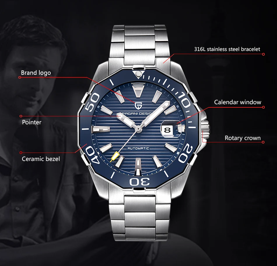 PAGANI DESIGN Men's Classic Diving Series Mechanical Watches Waterproof Steel Stainless Brand Luxury Watch Men Relogio Masculino