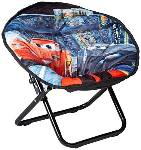 -. Binding : Toy -. Brand : Disney -. EAN : 0784857707458 -. Feature : Features unique Cars 3 Lightening McQueen design / Polyester fiber cushions are perfect for lounging and relaxing / Foldable frame with plastic pouch bag for easy travel and storage / 100% polyester upholstery with sturdy steel frame / Dimensions: 18-Inch W x 16-Inch H x 14-Inch L -. Label : Idea Nuova - LA -. Manufacturer : Idea Nuova - LA -. Model : Cars 3 -. MPN : Cars 3 -. NumberOfItems : 1 -. PackageQuantity : 1 -. PartNumber : Cars 3 -. ProductGroup : Toy -. ProductTypeName : TOYS_AND_GAMES -. Publisher : Idea Nuova - LA -. Studio : Idea Nuova - LA -. Title : Disney Cars 3 Mini Saucer Chair -. UPC : 784857707458 -. Warranty : No Warranty
