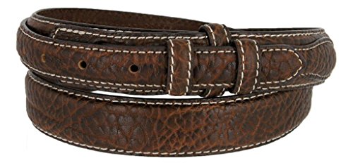 -. Binding : Apparel -. Brand : Belts.com -. Department : mens -. Feature : Genuine 100% Bison Leather Belt / Natural Bold Bison Leather enhanced by Heavy Duty Contrasting White Stitches / Includes double matching Bison Leather Loops to hold the excess / 1-1/8"(29mm) wide and accepts 3/4"(19mm) buckle sets- sold separately / Measure around where you wear the belt, with your pants on, and order that size. -. ProductGroup : Apparel -. ProductTypeName : ACCESSORY -. Title : Western Ranger Genuine Leather Bison Belt Strap for Men
