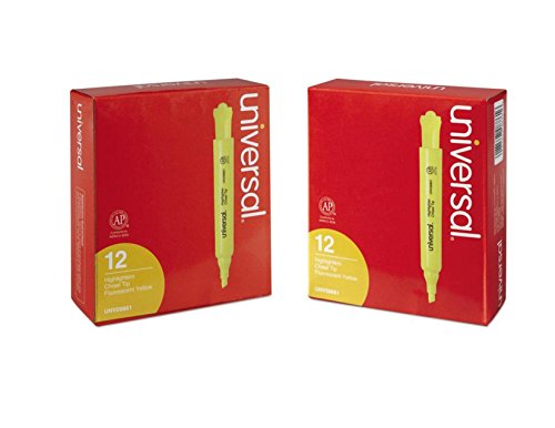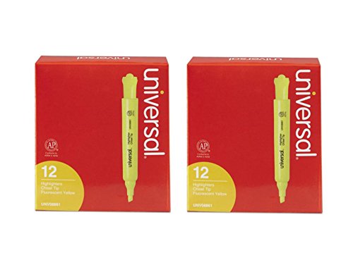 Universal Desk Highlighter, Yellow, Chisel Tip, Fluorescent, Pack of 24