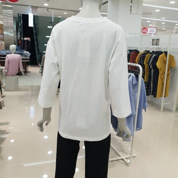 면소재의 루즈핏 라운드티셔츠입니다데님팬츠및 팬츠류와 단독으로도코디하기좋은아이템입니다