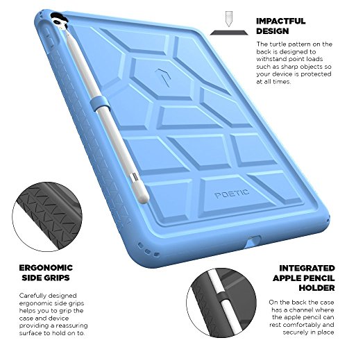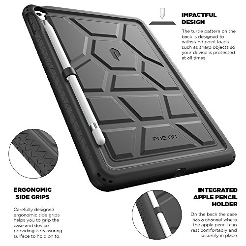 -. Binding : Personal Computers -. Brand : Poetic -. Feature : Made of premium childproof silicone. Utilitarian styling with seamless Poetic Design DNA / Tactile side grip feature with ergonomic grip supports. / Unique corner protection with perforated shock absorber design to protect from extreme shock and impact. / Unique rear pattern with raised supports for grip and drop protection in a turtle shell design. / Raised air vents on the inside helps keep the device cooler with longer usage. Ultra thick silicone with protective coating for splash proof protection. -. Label : Poetic -. Manufacturer : Poetic -. Model : TurtleSkin-iPad-Air3 -. MPN : TurtleSkin-iPad-Air3 -. PartNumber : TurtleSkin-iPad-Air3 -. ProductGroup : PC Accessory -. ProductTypeName : CARRYING_CASE_OR_BAG -. Publisher : Poetic -. Studio : Poetic -. Title : Poetic Turtle Skin Cover Case for Apple iPad Pro 9.7