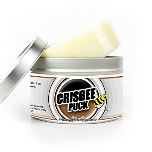 -. Title : Crisbee Puck Tin Coconut Scent - Cast Iron Seasoning