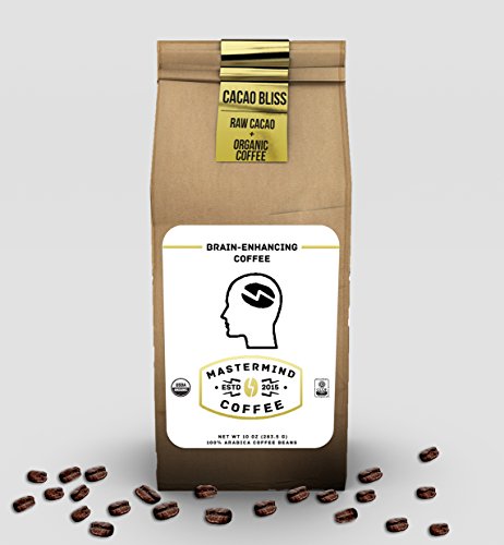 Cacao Bliss Brain Enhancing Nootropic Coffee, 100% Ground Organic Coffee Blended with Raw Cacao (Chocolate) for Drip - Boosts Mood, Mental Clarity, Memory & All-day Energy, NO Caffeine Crash! (10 oz)