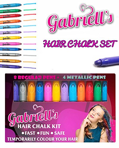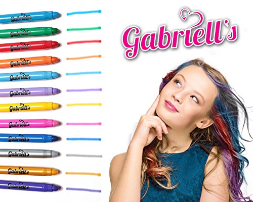 Hair Chalk Pens - Gabriells 12 Hair Color Pen Set & Face Paint Kit- Non Toxic wax - Best Gift for Girls, Boys, Children, Men and Women - Temporary Colors