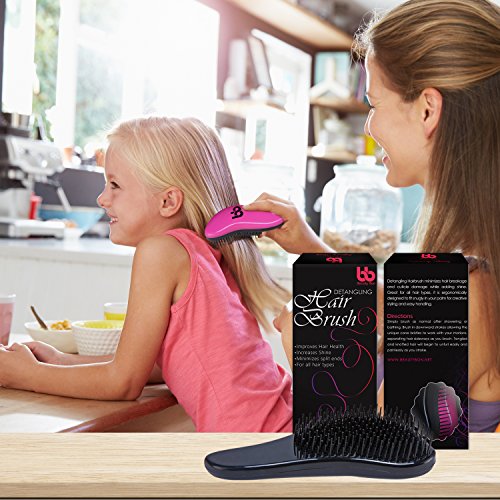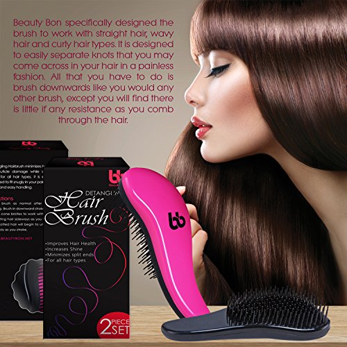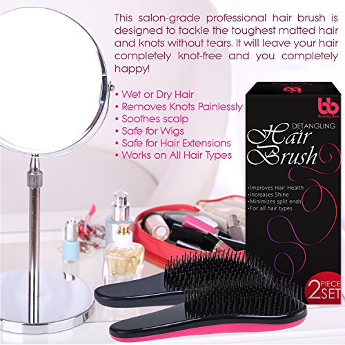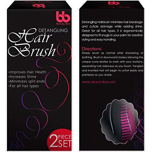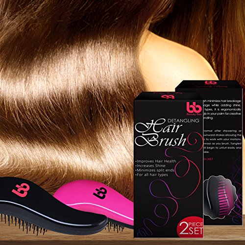 Detangling Hair Brush Set of 2, Best Detangler Comb for Women, Men & Children, Black & Pink, By Beauty Bon