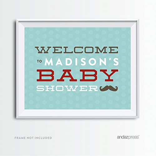 - Feature : Write NAME in gift message box when checking out. / INCLUDES: 2 printed baby shower party signs, designed by Andaz Press. DOES NOT INCLUDE FRAME. / SIZE: 8.5-inch x 11-inch. Properties: Matte finish. Single-sided, digitally printed on high quality paper, with vibrant colors. Actual product color may vary slightly due to differences in monitor settings. / PERFECT to place on a mini table easel, in a photo frame, or on a wall to guide guests, and add a unique touch to your special event! © Andaz Press. Original design by Andaz Press ®. All rights reserved. Come by www.andazpress.com and say hello! / FLAT RATE SHIPPING: Fill your cart with Andaz Press items, and pay ONE LOW SHIPPING RATE. Expedited and 2-day shipping also available! All orders ship within 1-2 business days from California.
