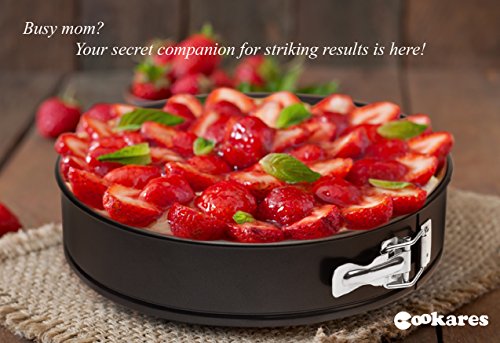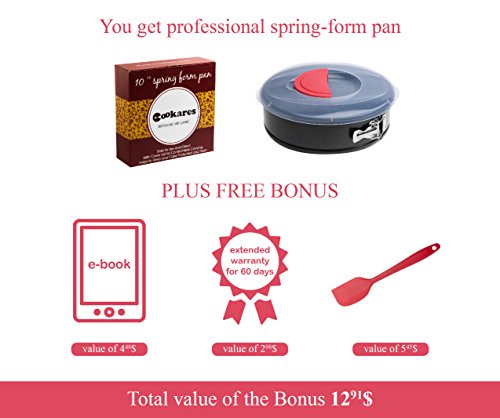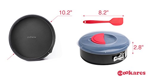 Studio : CooKers Publisher : CooKers Product Description High quality springform pan 10.2' with cover lid for comfortable transportation. Helps protect your delicious cake. Springform pan heat resistant up to 445℉ (230℃) degrees. Lid is made with food safe plastic material that is BPA free and nontoxic. Use the lid after the baking pan has cooled to room temperature. Avoid sharp and rough tools to protect the non-stick coating, wash by hand using a soft fabric. FBA approved, approved by SGS - FDA 21 CFR 175.300 non-stick coating, SAFE AND NON-TOXIC. Get the best value for your money- Quality Baking Mold Silicone Spatula Recipe eBook Extensive Warranty Stylish Gift Packaging, Buy Now! 0