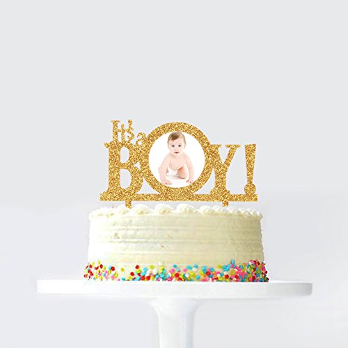 Gold It's a Boy Cake Topper with Photo Frame, Baby Boy Photo Picture Baby Shower Birthday Cake Toppers, Party Cake Decorations