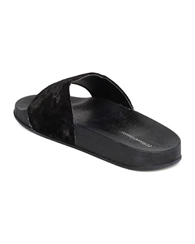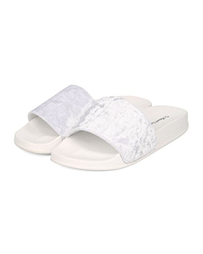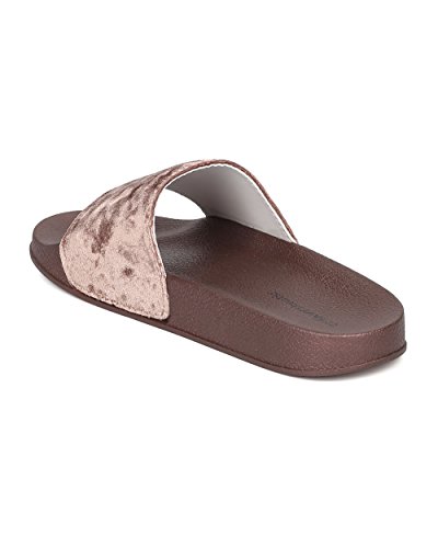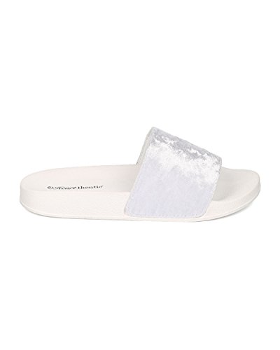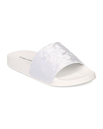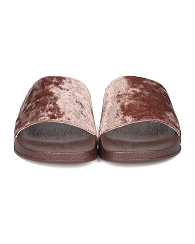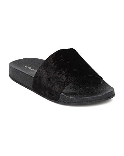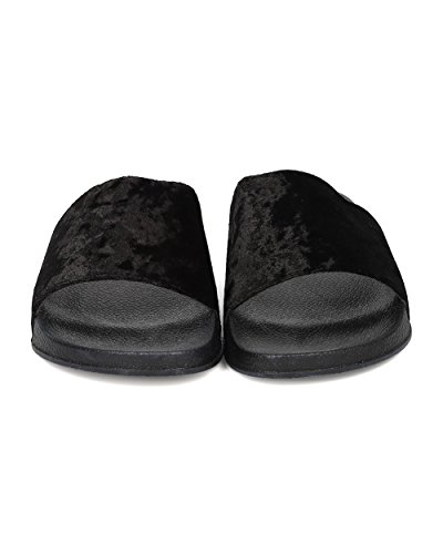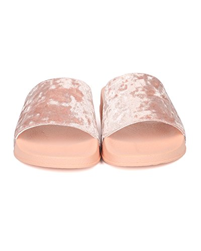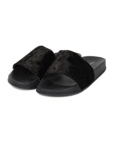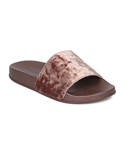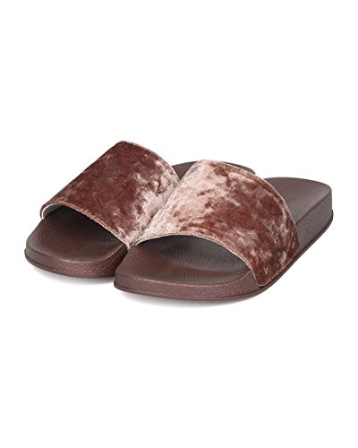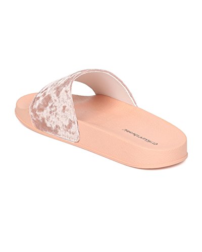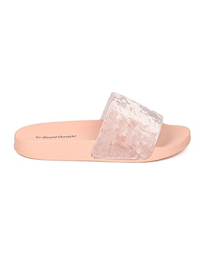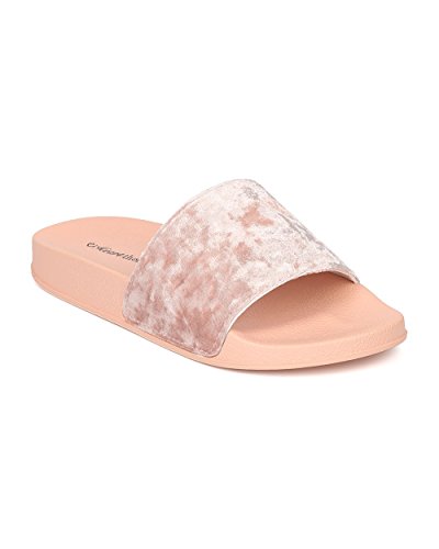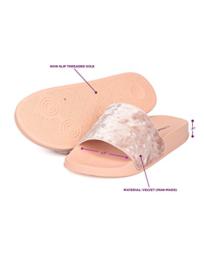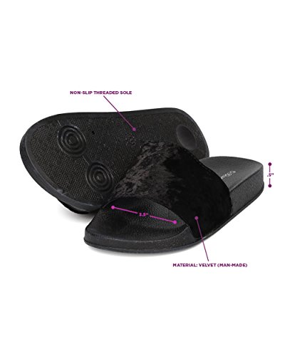 Indulge Women Velvet Flat Sandal - Molded Footbed Slipper - Open Toe Slide - FLO-20 By Heart.Th...