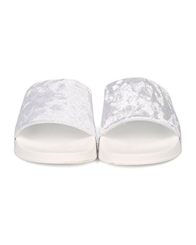 Product Description These velvet sandals are made with an open toe, single band at vamp and molded footbed. Also made with a flat heel and easy to slip on design. 0