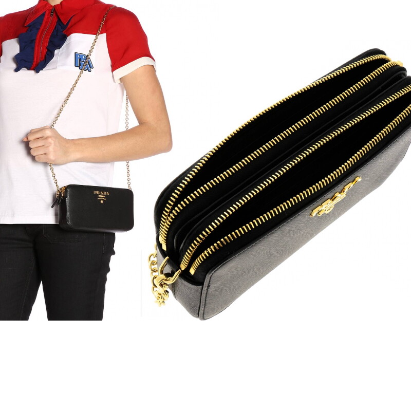 프라다 고유의 스크래치에 강한 사피아노 가죽소재와 골드색상의 체인으로 심플한 디자인이 돋보입니다.