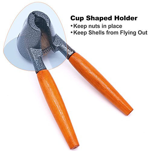 High Quality Wood Handles- Can hold on tight for perfect cracking, Instead of whole metal handle that chill you hand, this wood handle cracker is your best choice to crack nuts in cold winter!!