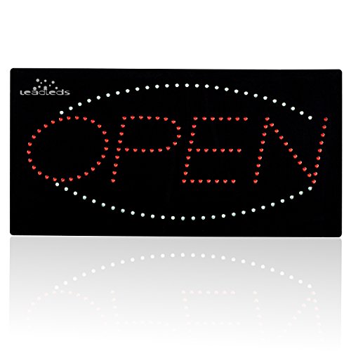Leadleds 1910-1 Neon Sign Portable 19-inch Led Open Sign Board Red and Blue Color with 2 Light Modes for Beauty Salon Nail Sushi Bakery Barber Massage Restaurant Office Store Business