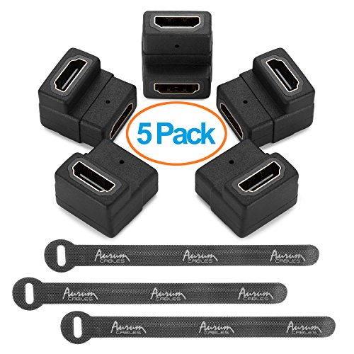 Aurum Cables 90 Degree HDMI Female Coupler - Black - 5 Pack + Cable Ties