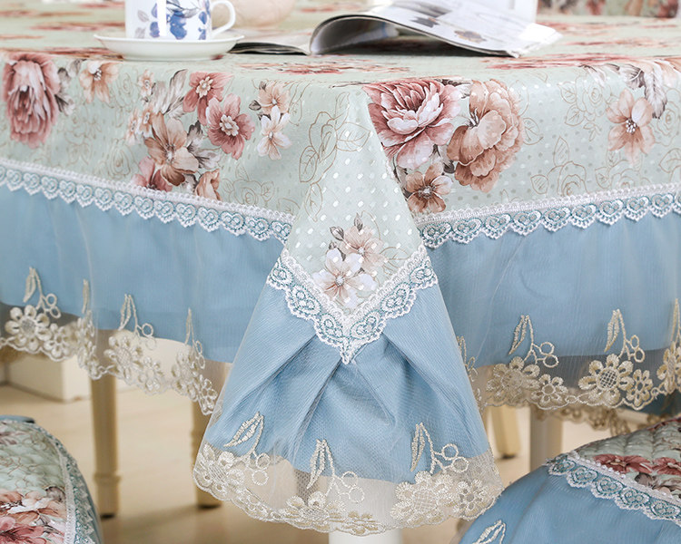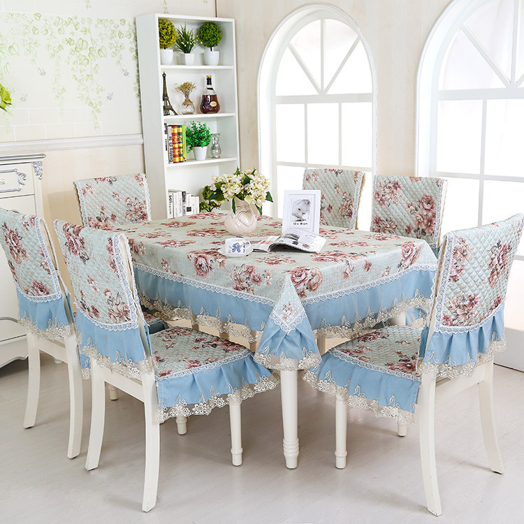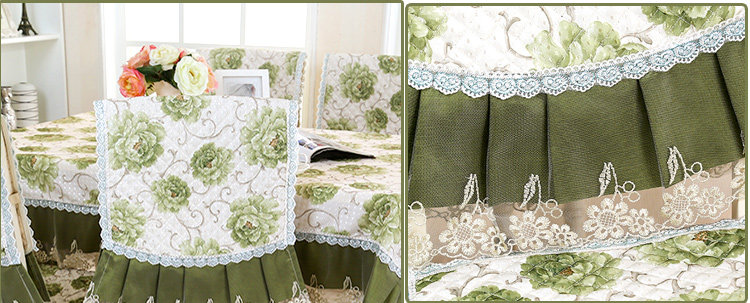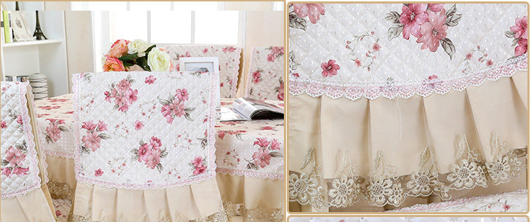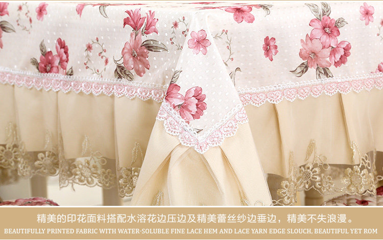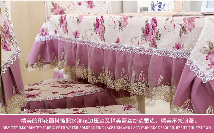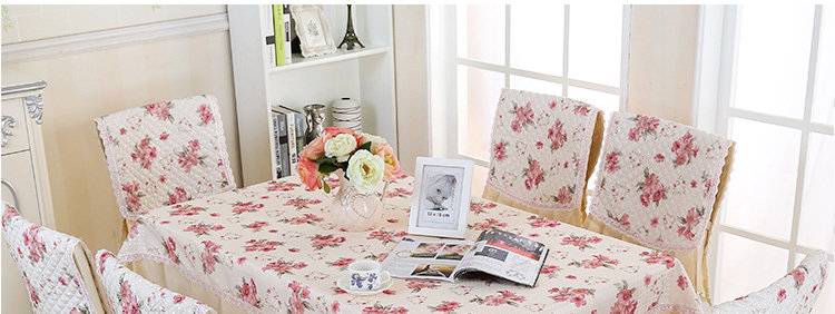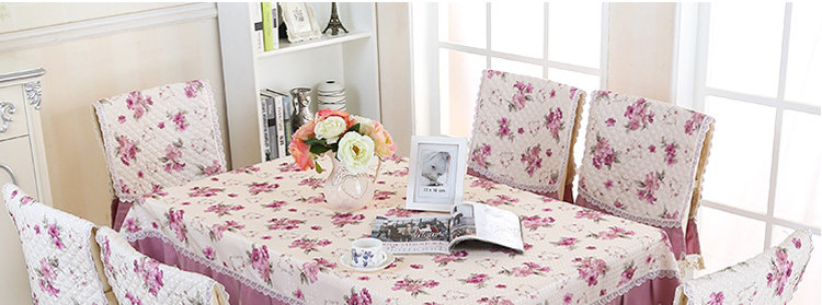 Product Descriptional Beautiful Rose Design Table Cloth Set Chair Cover Cusion Tablecloth Polyester Cotton Flower Print Table Cover