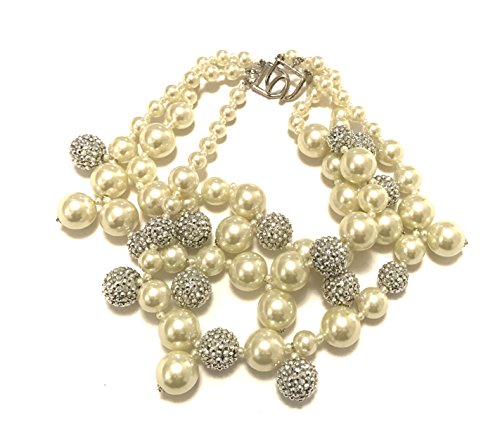 KENNETH JAY LANE-3 ROW SILVER/GRAY BEADS NECKLACE WITH PAVE CRYSTAL BALLS ACCENTS. LET ME KNOW IF YOU WANT AN EXTENDER FOR THIS NECKLACE. ALSO AVAILABLE IN WHITE PEARL AND CLEAR BEADS.
