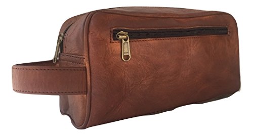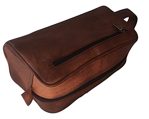 Handmade Goat Genuine Leather Toiletry Bag Dopp Kit Shaving and Grooming Kit for Travel ~ Gift for Men Women ~ Hanging Zippered Makeup Bathroom Cosmetic Pouch Case by VINTAGE CRAFTS