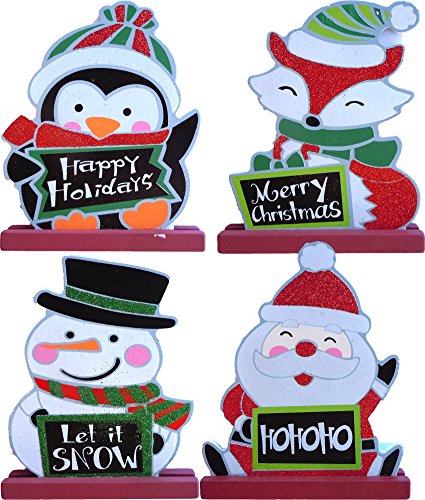 Christmas Character Plaque Set Of 4- Snowman, Santa, Penguin, & Fox