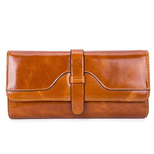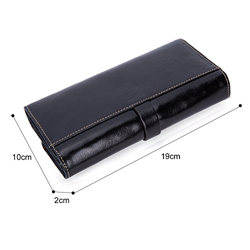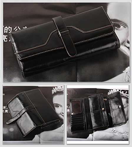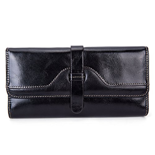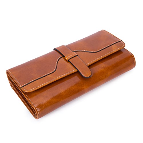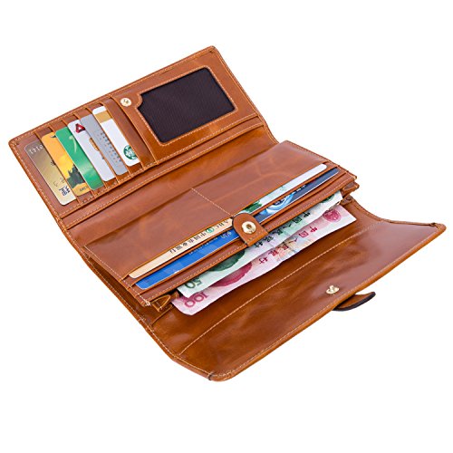 -. Feature : Excellent Workmanship. Crafted from 100% genuine top grain oil wax cowhide leather with shiny gold-color buckles and fluent zipper. Sturdy, dedicated sewing thread and perfectly uniform stitching that will endure the wallet wear and tear of everyday use for many years. / Structure. 12 RFID Lock Credit Card Slots, 1 ID Window, 3 large cash/checkbook pockets, 1 zippered pocket, perfect organized your cash, cards and other small items. Stylish design and large capacity wallet for women. / Large Capacity. Dimensions: 7.48*3.94*0.79 inch (L * W * H). Fits your iPhone 7s plus, money, card, note, photos, coin and receipt etc. You can simply hold it on hand or put it in bag. / RFID Blocking Protection. Safety Protect Your valuable data - Block RFID readers from scanning your credit cards, debit cards, banking information, smartcards, RFID driver's licenses and other RFID Cards / Fashion Style. Elegant, stylish, and simple style suit for your daily use, showing your good taste and exquisiteness.